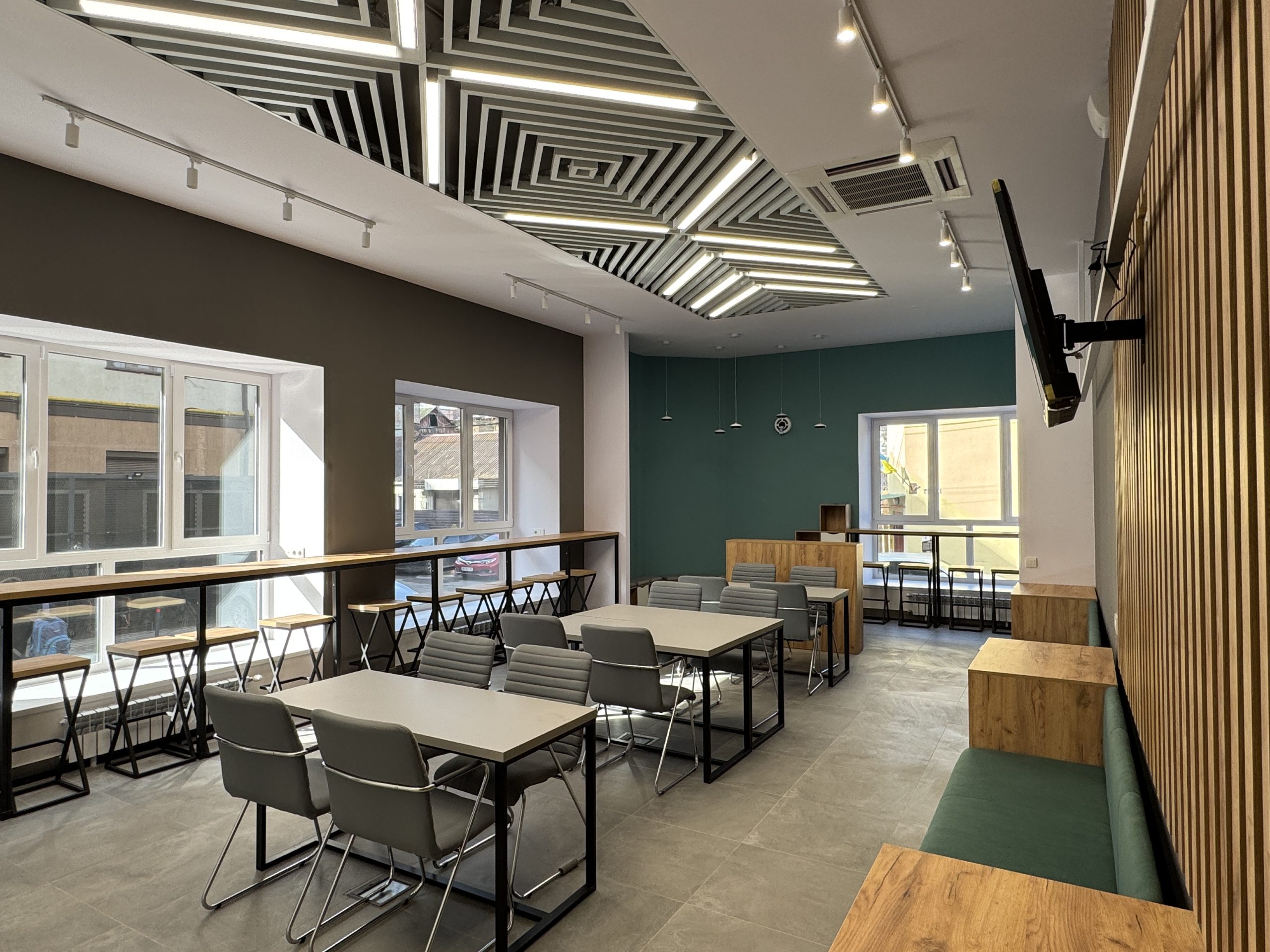 Open Space – це простір, призначений для індивідуальної роботи, неформальних зустрічей та взаємодії між представниками малого і середнього бізнесу. Простір доступний для резидентів та зареєстрованих відвідувачів, чия діяльність відповідає напрямам роботи коворкінгу.